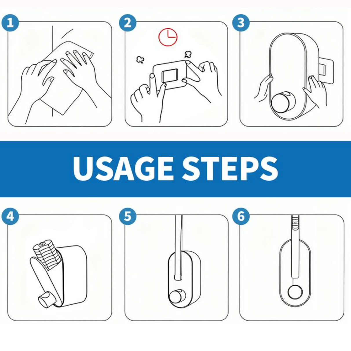 The slim caddy sticks up in under 2 minutes — no drilling, no damage, no tools. Holds all your refills right where you need them.